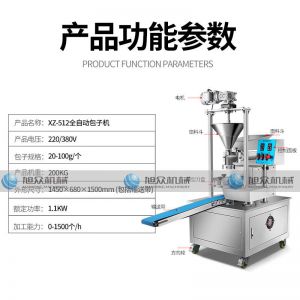 名稱XZ-512包子機(jī) 電源220/380V(見(jiàn)機(jī)器銘牌) 功率1.1KW 產(chǎn)量0-1500個(gè)/h 尺寸1450×680×1500mm(包括輸送帶) 重量200KG 規(guī)格20-100g/個(gè) 其他