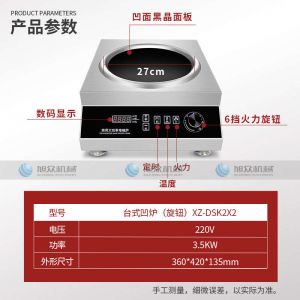 臺式凹爐(旋鈕)XZ-DSK2X2.,3500W爆炒大火力商用電磁爐。不銹鋼材質(zhì)電磁爐采用加厚不銹鋼架構(gòu),抗沖擊,耐磨耐壓,穩(wěn)定耐用,不易損壞,易于清潔。