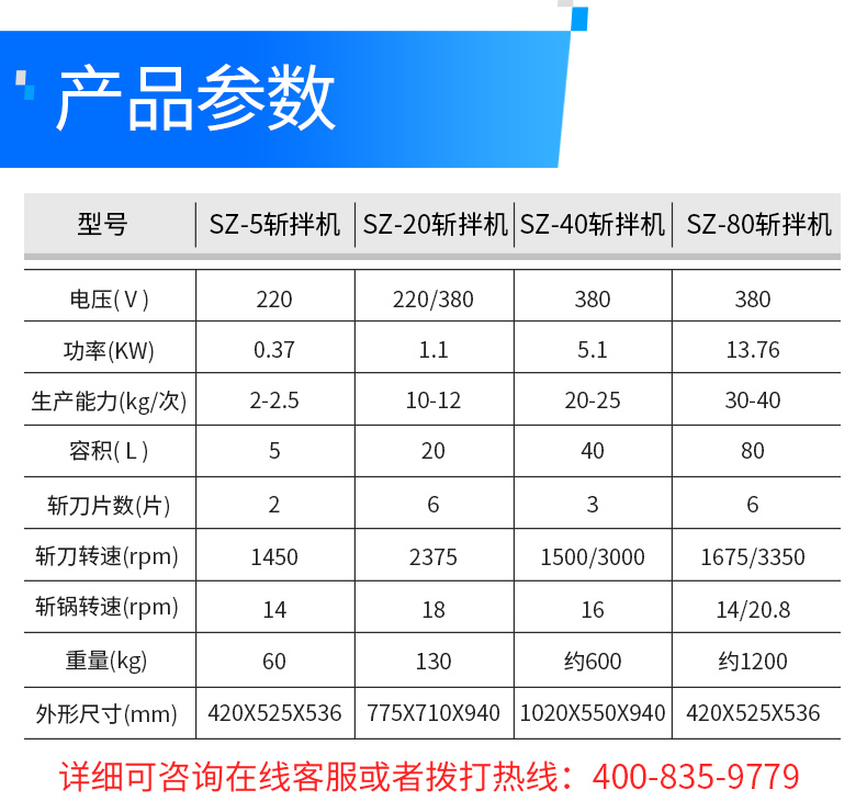 名稱SZ-5型斬拌機 電源各型號不同,需要請聯(lián)系客服 功率各型號不同,需要請聯(lián)系客服 產(chǎn)量 尺寸各型號不同,需要請聯(lián)系客服 重量 規(guī)格各型號不同,需要請聯(lián)系客服 其他