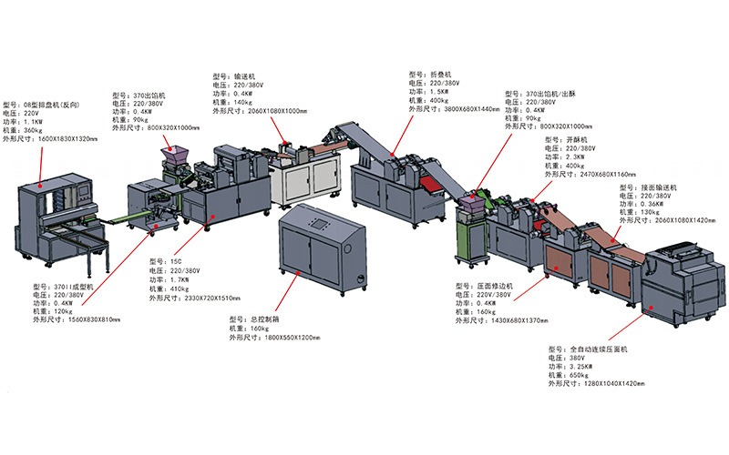 蛋黃酥生產(chǎn)線,酥餅生產(chǎn)線承包你的美食愿望。鮮花餅、綠豆餅、酥油餅、糖酥餅、肉松餅、紫薯酥餅、紫菜酥餅等。每小時(shí)產(chǎn)量高達(dá)5000個(gè),生產(chǎn)速度快、效率高。