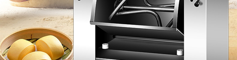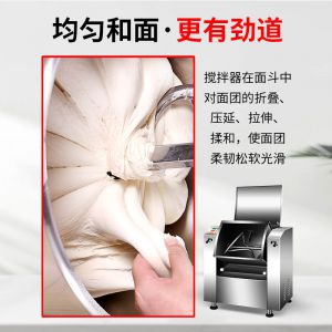 低噪音和面機(jī),利用攪拌器的轉(zhuǎn)動,使面粉和水在面斗中形成小顆粒,粘黏形成大面團(tuán)塊。大容量翻轉(zhuǎn)面斗,采用優(yōu)質(zhì)不銹鋼焊接制造,防腐蝕,食品接觸安全,符合食品生產(chǎn)安全標(biāo)準(zhǔn)。