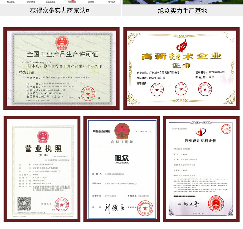 廣州旭眾食品機械有限公司是一家集科研開發(fā),生產設計,營銷服務為一體的現(xiàn)代化生產企業(yè)?,F(xiàn)代化生產車間,精湛制造技術,所產機械歷經市場重重考驗,不斷贏得海內外客戶的贊譽。