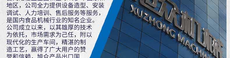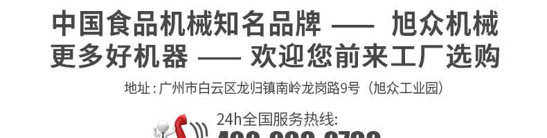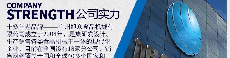 廣州旭眾食品機械有限公司是一家集科研開發(fā),生產設計,營銷服務為一體的現(xiàn)代化生產企業(yè)?,F(xiàn)代化生產車間,精湛制造技術,所產機械歷經市場重重考驗,不斷贏得海內外客戶的贊譽。