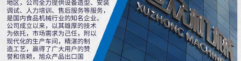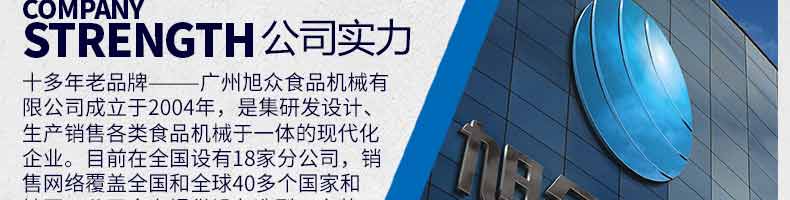 廣州旭眾食品機(jī)械有限公司是一家集科研開(kāi)發(fā),生產(chǎn)設(shè)計(jì),營(yíng)銷(xiāo)服務(wù)為一體的現(xiàn)代化生產(chǎn)企業(yè)。現(xiàn)代化生產(chǎn)車(chē)間,精湛制造技術(shù),所產(chǎn)機(jī)械歷經(jīng)市場(chǎng)重重考驗(yàn),不斷贏得海內(nèi)外客戶的贊譽(yù)。
