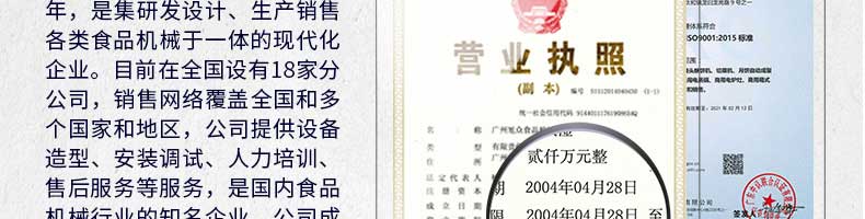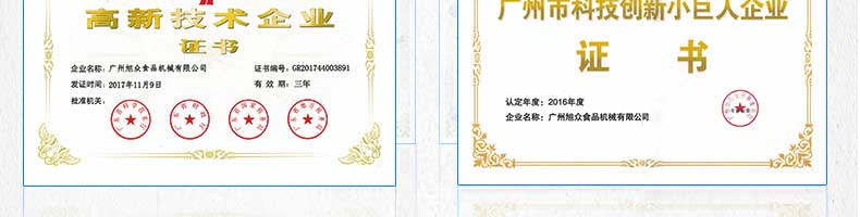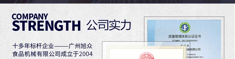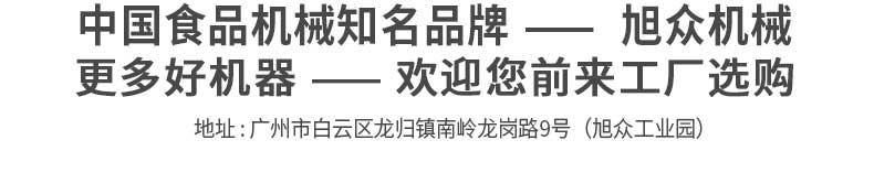 廣州旭眾食品機械有限公司是一家集科研開發(fā),生產(chǎn)設計,營銷服務為一體的現(xiàn)代化生產(chǎn)企業(yè)。現(xiàn)代化生產(chǎn)車間,精湛制造技術,所產(chǎn)機械歷經(jīng)市場重重考驗,不斷贏得海內(nèi)外客戶的贊譽。