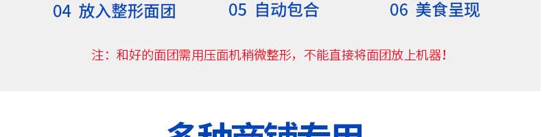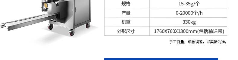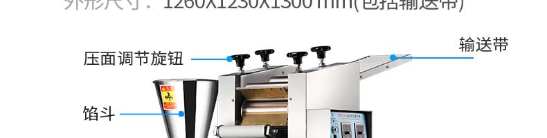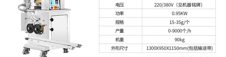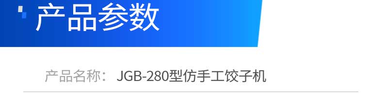 名稱JGB-280仿手工餃子機 電源220/380V 功率1.75kw 產(chǎn)量0-18000個/小時 尺寸1260*1230*1300mm 重量270KG 規(guī)格 其他