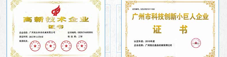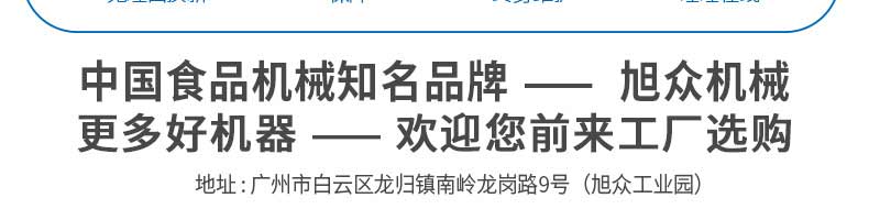 廣州旭眾食品機械有限公司是一家集科研開發(fā),生產設計,營銷服務為一體的現代化生產企業(yè)。現代化生產車間,精湛制造技術,所產機械歷經市場重重考驗,不斷贏得海內外客戶的贊譽。
