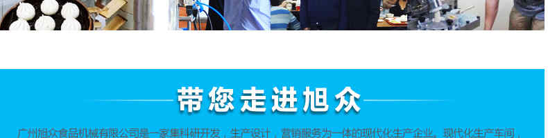 廣州旭眾食品機(jī)械有限公司是一家集科研開發(fā),生產(chǎn)設(shè)計,營銷服務(wù)為一體的現(xiàn)代化生產(chǎn)企業(yè)?,F(xiàn)代化生產(chǎn)車間,精湛制造技術(shù),所產(chǎn)機(jī)械歷經(jīng)市場重重考驗,不斷贏得海內(nèi)外客戶的贊譽。