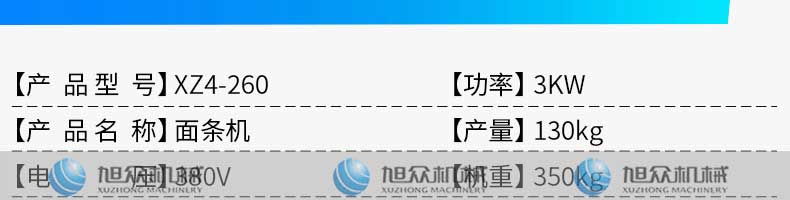 名稱XZ4-260面條機 電源380V 功率3KW 產(chǎn)量130kg 尺寸900x700x1400mm 重量350kg 規(guī)格聯(lián)系銷售員 其他