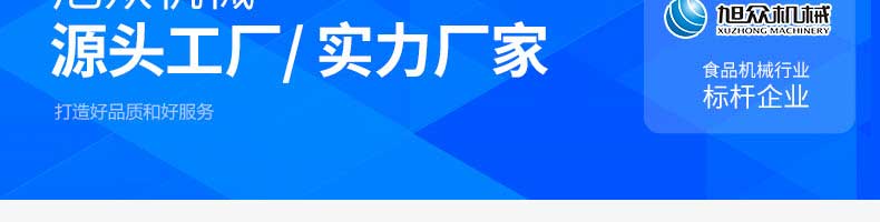 廣州旭眾食品機械有限公司是一家集科研開發(fā),生產(chǎn)設計,營銷服務為一體的現(xiàn)代化生產(chǎn)企業(yè)?,F(xiàn)代化生產(chǎn)車間,精湛制造技術,所產(chǎn)機械歷經(jīng)市場重重考驗,不斷贏得海內(nèi)外客戶的贊譽。