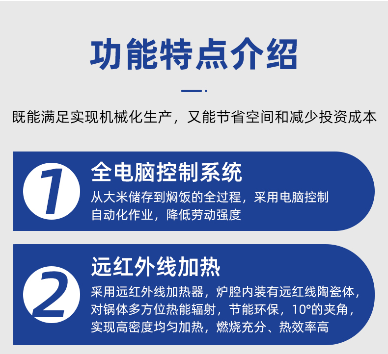 機械手全自動米飯生產(chǎn)線,實力大咖 商用好幫手,提供培訓、指導和工藝傳授,品牌服務有保障。遠紅外加熱、智能控制、立體燜飯、不粘鍋、熱效率高、不銹鋼結(jié)構(gòu)、雙層保溫、節(jié)能環(huán)保。