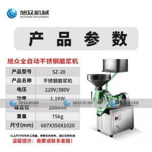名稱SZ-20不銹鋼磨漿機 電源220/380v 功率1.1kw 產(chǎn)量 尺寸607*350*1020mm 重量75kg 規(guī)格 其他