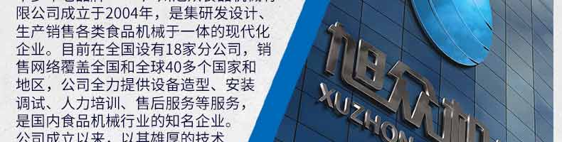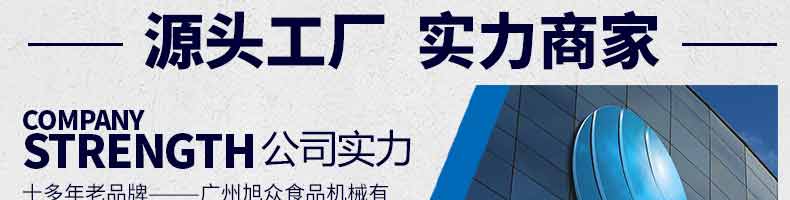 廣州旭眾食品機械有限公司是一家集科研開發(fā),生產(chǎn)設(shè)計,營銷服務為一體的現(xiàn)代化生產(chǎn)企業(yè)?,F(xiàn)代化生產(chǎn)車間,精湛制造技術(shù),所產(chǎn)機械歷經(jīng)市場重重考驗,不斷贏得海內(nèi)外客戶的贊譽。