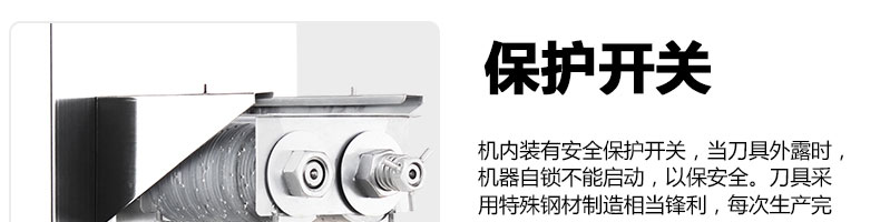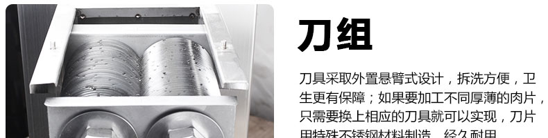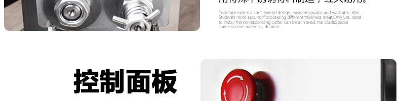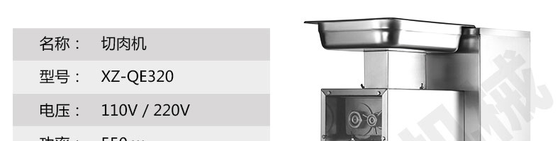 XZ-QE切肉機,是一款可方便移動的肉類加工設(shè)備,配置單層刀具一次性切肉片,二次切肉絲,再切成粒。底座設(shè)置有滑輪,移動靈活,輕松便捷;刀具采取外置懸臂式設(shè)計,拆洗方便,衛(wèi)生更有保障;配置多種刀具,可加工不同厚度的肉片,實現(xiàn)一機多用;機內(nèi)裝有安全保護開頭,刀具外露時,機器自鎖不能啟動,以保安全;刀片用特殊不銹鋼材料制造,經(jīng)久耐用;卸下的刀具,不用清洗直接放置在6攝氏度以下的冰箱里,刀具余肉不發(fā)臭。