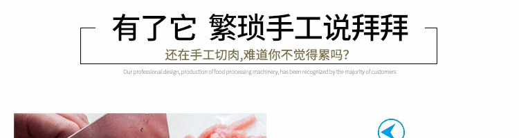 作者:旭眾機(jī)械發(fā)布時(shí)間:2018-04-17 16:16查看數(shù):您當(dāng)前的位置:首頁>>產(chǎn)品展示>>肉制品加工系列>>切肉機(jī)系列