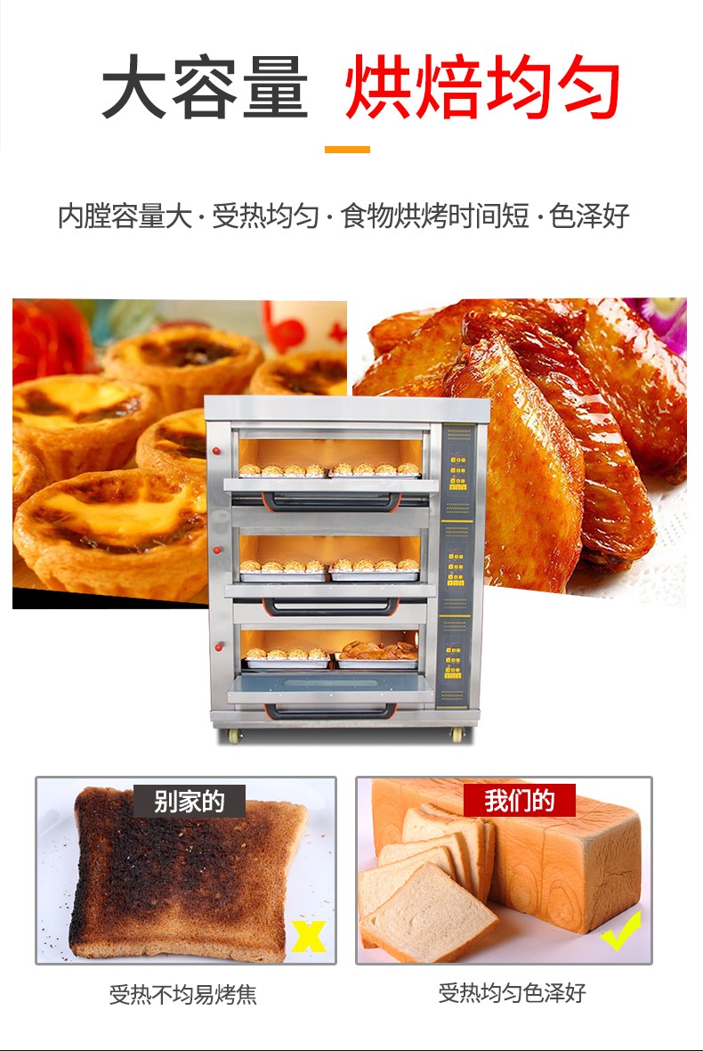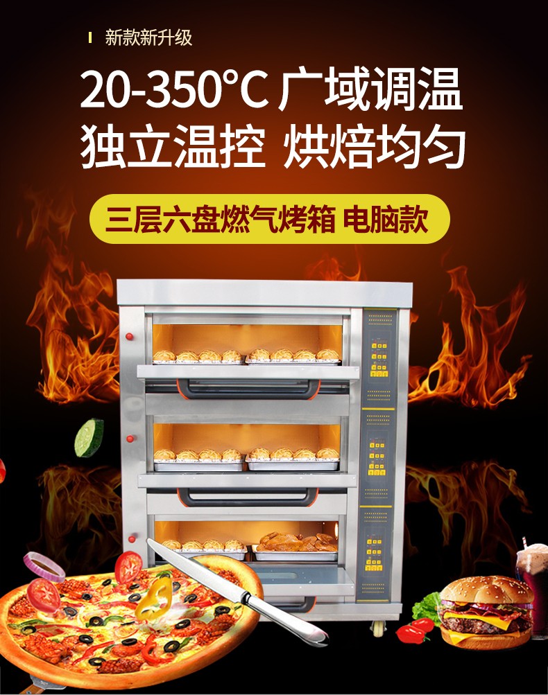 名稱三層六盤電腦版燃氣烤箱 電源220V 功率0.3KW 產量 尺寸1340*908*1690mm 重量300KG 規(guī)格三層六盤 其他