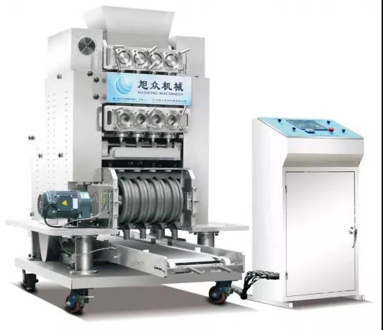 XZ4T-1502型多頭湯圓成型排盤機是一款依外皮及餡料的種類不同,可制作出湯圓、豆沙包、南瓜餅、奶黃包、含餡饅頭、玉兔包等包餡食品,并可自動排盤的設(shè)備。功能齊全,適用性廣,自動化程度高,定量準確,操作簡單,只要將面團與餡料放入進料口,開機便可自動搓圓、成型,制品不易變形。