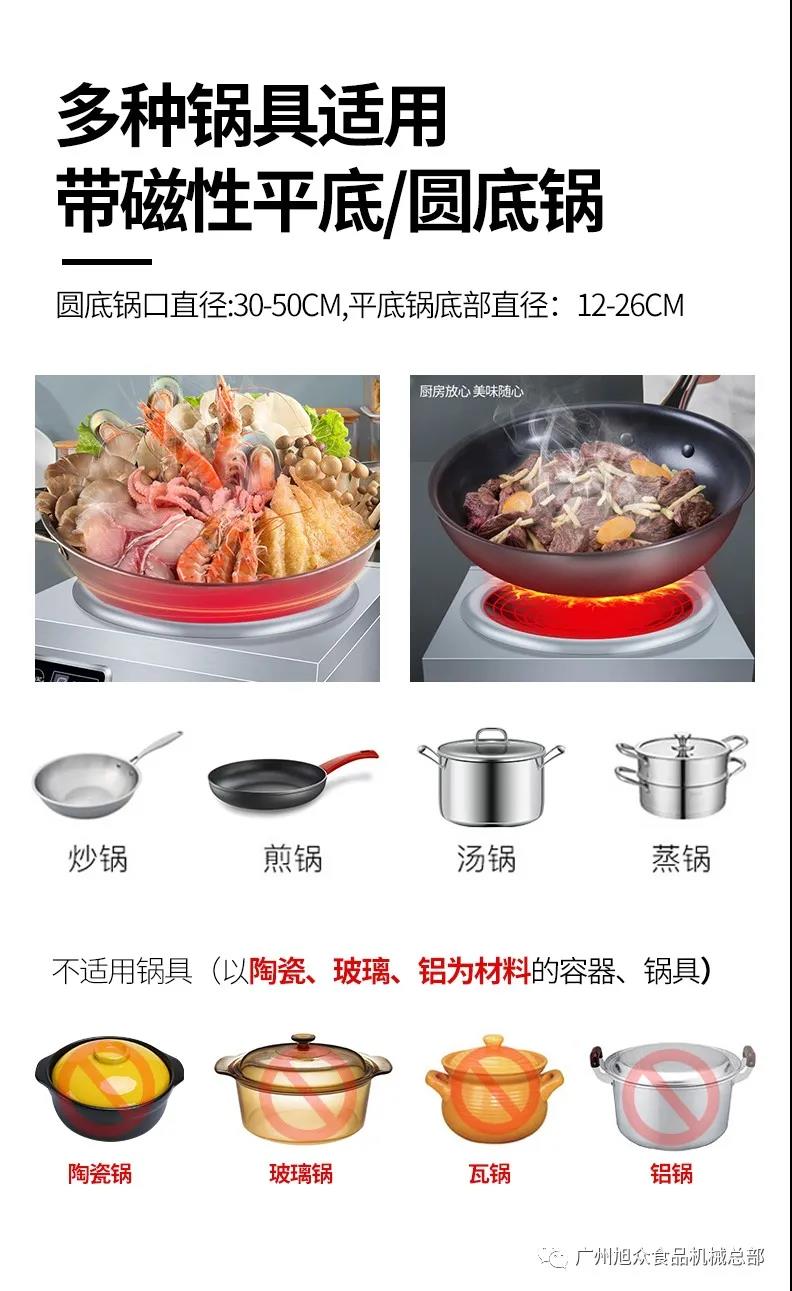 商用電磁爐和大功率電磁灶用在食堂,學(xué)校,火車上,輪船上,酒店,餐館里,它們需要長時(shí)間的處于工作狀態(tài),電磁爐不受溫度驟變能力影響,適用于各種場地使用。