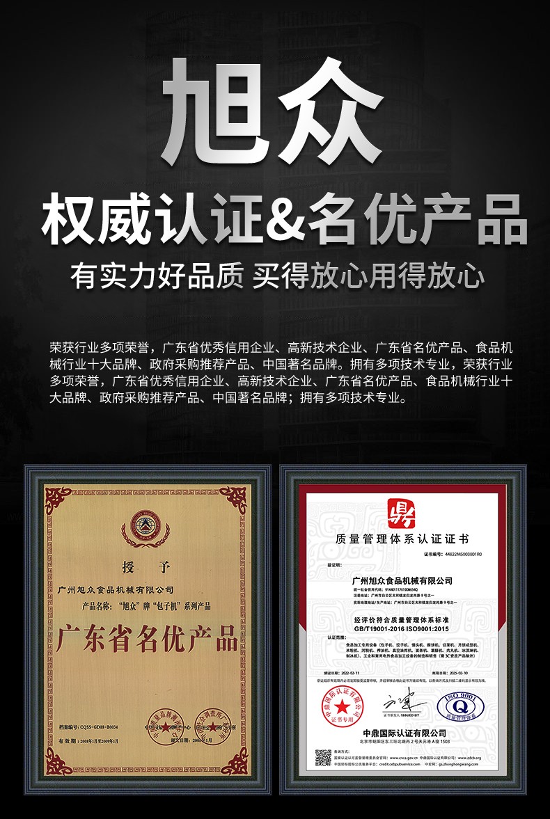 廣州旭眾食品機(jī)械有限公司是一家集科研開發(fā),生產(chǎn)設(shè)計(jì),營銷服務(wù)為一體的現(xiàn)代化生產(chǎn)企業(yè)?,F(xiàn)代化生產(chǎn)車間,精湛制造技術(shù),所產(chǎn)機(jī)械歷經(jīng)市場重重考驗(yàn),不斷贏得海內(nèi)外客戶的贊譽(yù)。