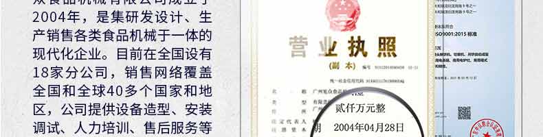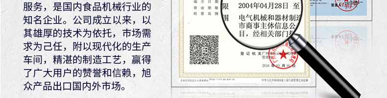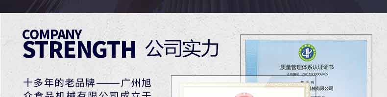 廣州旭眾食品機(jī)械有限公司是一家集科研開發(fā),生產(chǎn)設(shè)計(jì),營銷服務(wù)為一體的現(xiàn)代化生產(chǎn)企業(yè)?,F(xiàn)代化生產(chǎn)車間,精湛制造技術(shù),所產(chǎn)機(jī)械歷經(jīng)市場(chǎng)重重考驗(yàn),不斷贏得海內(nèi)外客戶的贊譽(yù)。